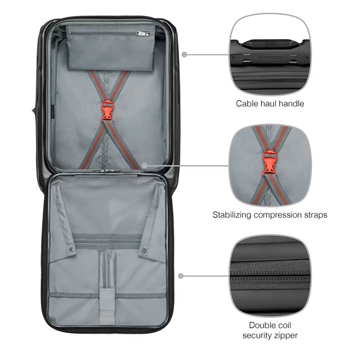 Черен куфар за ръчен багаж Wenger Amplix Carry-On – иновативен, здрав и функционален избор за модерния пътешественик
