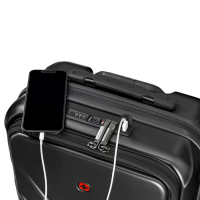 Amplix Carry-On е съвременен черен куфар за ръчен багаж, който съчетава иновативен дизайн, сигурност и швейцарска надеждност.