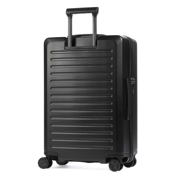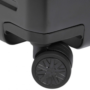 Куфарът е изработен от лек и устойчив поликарбонат, който осигурява защита на багажа при натоварване. Оборудван е с четири двойни колела, които се въртят на 360° и позволяват плавно и безшумно движение във всички посоки. Телескопичната дръжка с ергономичен дизайн допринася за удобно управление, независимо от терена.
