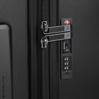 Интериорът е добре организиран с разделено пространство, фиксиращи ленти и допълнителен джоб с цип за по-добро подреждане на вещите. Куфарът разполага с TSA заключване и двупосочен цип с повишена защита, което гарантира сигурност по време на пътуване.